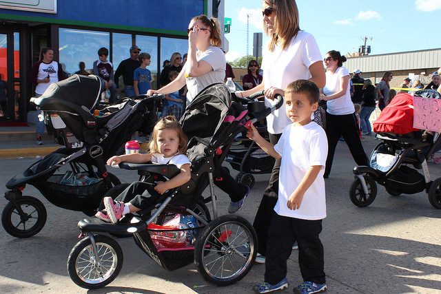 Photo: Moms and children march in the Homecoming parade in Watford City, ND. Photo by Doreen Gosmire, Dakotas UMC.