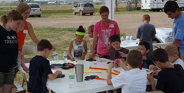Photo: Volunteers lead a craft activitiy during VBS in Watford City. Photo courtesy of Bakken Oil Rush.