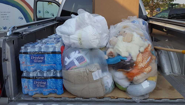 Photo: Summer clothing items and other supplies are loaded to be travel to Houston to reach out to those in need after tropical storm Harvey. Photo by Jim Konsor.