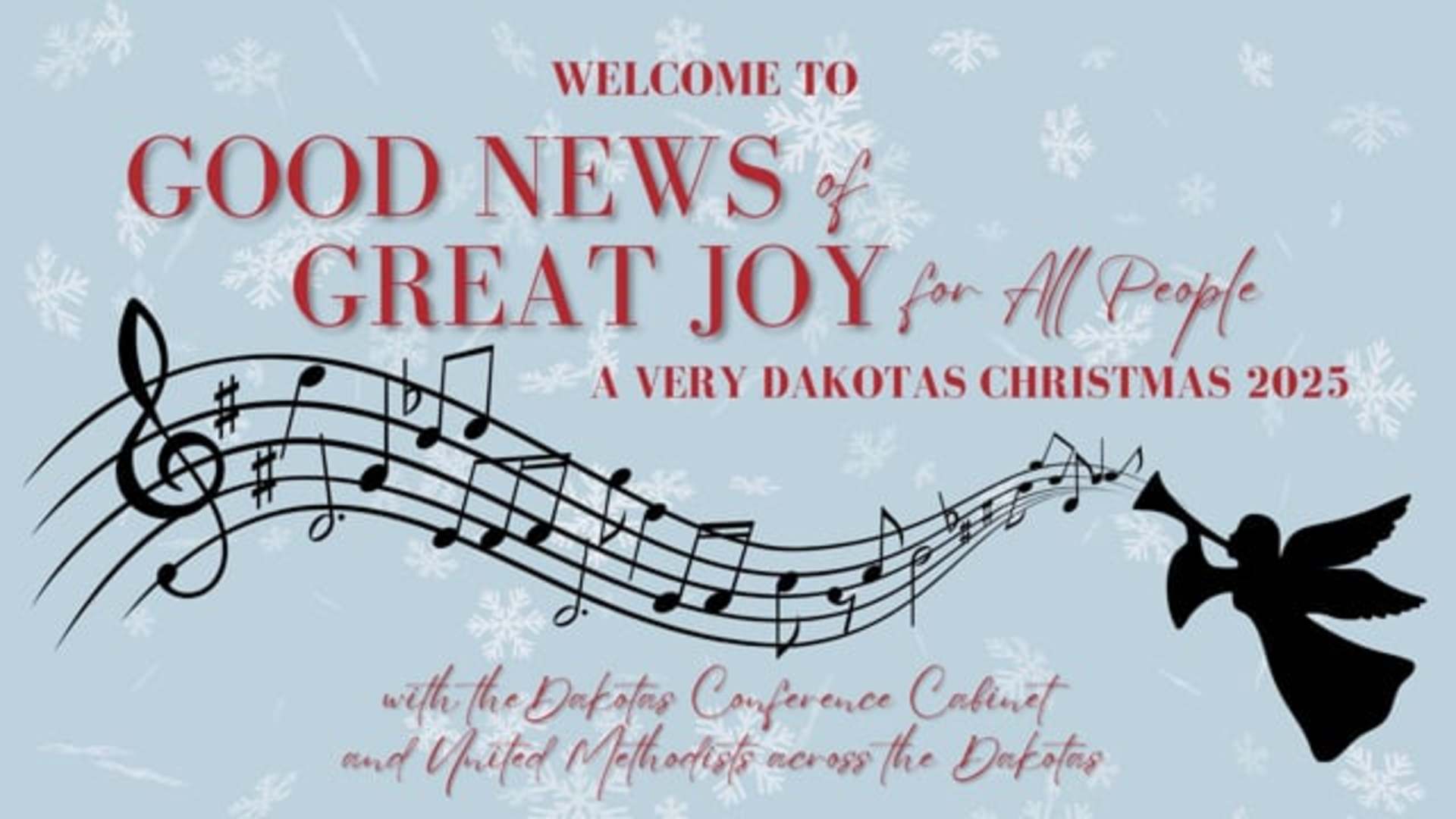 Bishop Lanette Plambeck and the Dakotas Conference Cabinet present this gift of worship to you, "Good News of Great Joy for All People: A Very Dakotas Christmas." In Luke 2:10, we hear the words of the angels to the shepherds, "Do not be afraid. I bring you good news that will cause great joy for all the people." This announcement of the birth of Christ stirred the shepherds to respond - to go and seek Jesus and then to tell others.