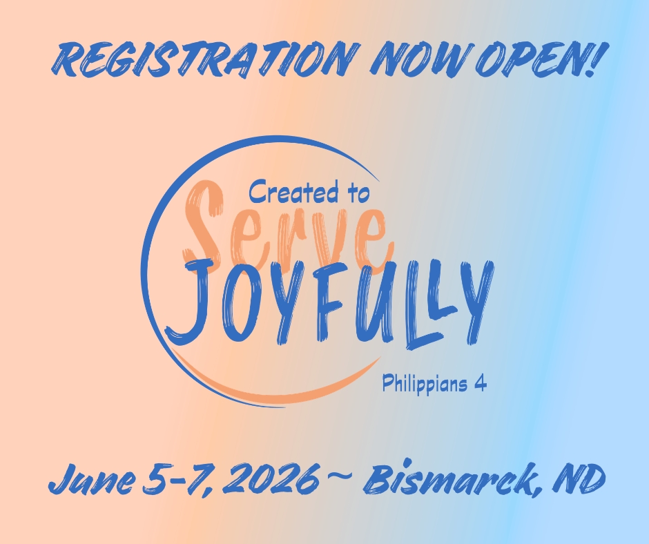 Registration is now open for the 2026 Annual Conference in Bismarck, ND June 5-7! Join us as we gather under this year’s theme, Created to Serve Joyfully. From engaging workshops to meaningful connection and exciting new activities introduced this year, there’s something for everyone. Be sure to register early and sign up for workshops to make the most of your experience. We’ll see you in Bismarck!